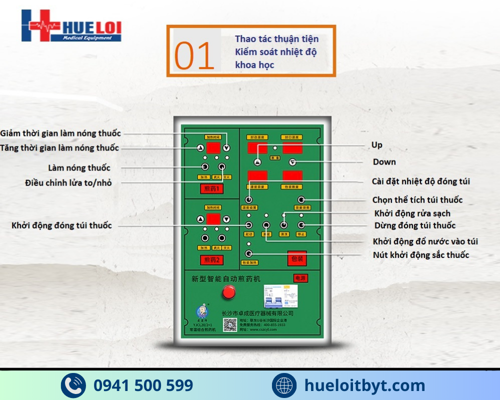 Máy sắc thuốc và đóng túi tự động khiến cho việc sắc thuốc bắc chưa bao giờ trở nên đơn giản đến thế. Được sử dụng rộng rãi trong các bệnh viện, bệnh nhân giờ đây không cần phải chờ hàng giờ để lấy thuốc sắc, cũng như không cần tốn thời gian để sắc thuốc ở nhà. Với sản phẩm Máy sắc thuốc đóng gói tự động 2 nồi đun, dung tích mỗi nồi đun lên đến 20L, bạn giờ đây có thể sắc 2 đơn thuốc khác nhau cùng lúc, tiết kiệm thời gian và công sức cho cả bệnh nhân và người sắc thuốc.